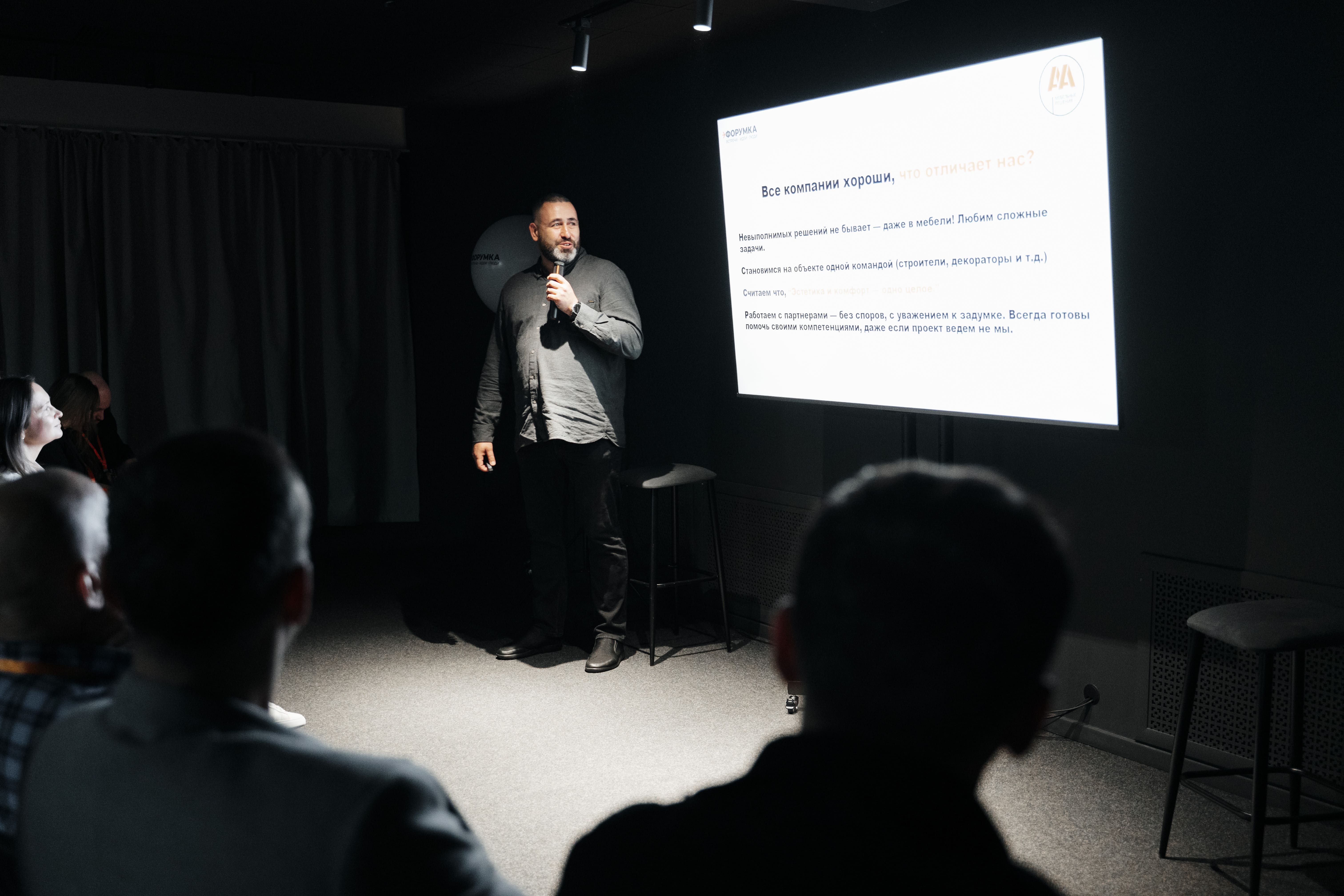 Мы — команда компаний и людей, объединённых желанием развивать интерьерный рынок. Создаём пространство без формальностей, где ценятся открытость, энергия общения и сотрудничество. Форумка — это сообщество идей, коллабораций и профессионального роста.