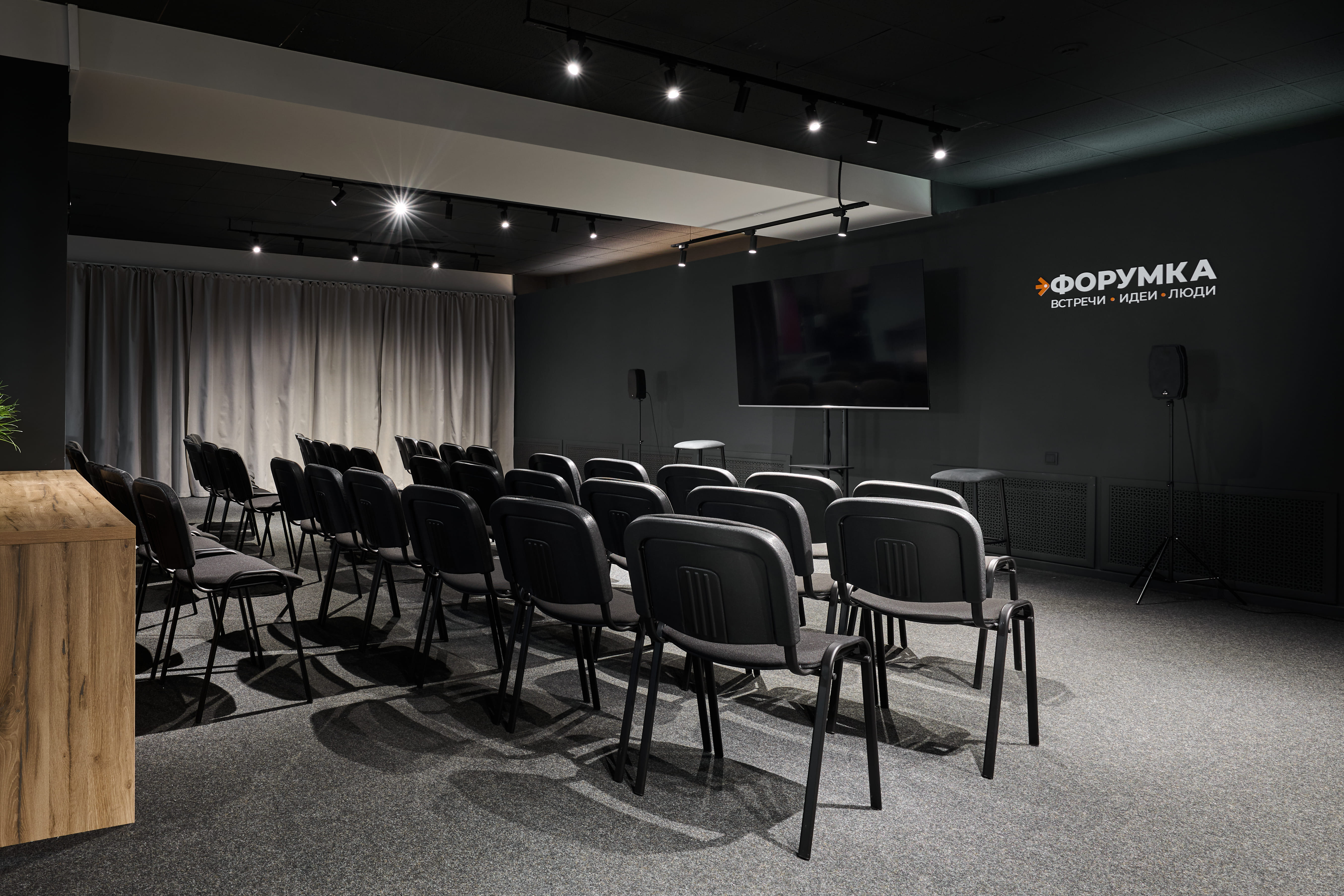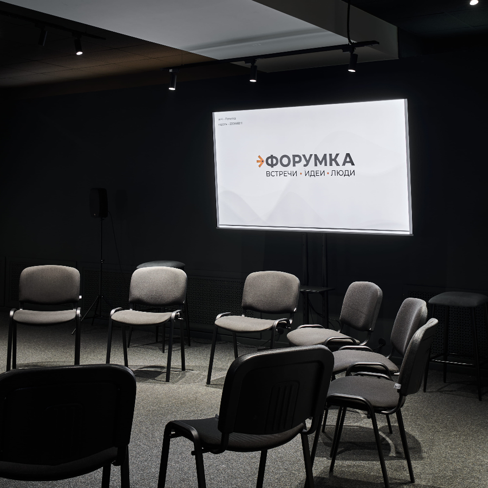 Площадка полностью оборудована: стулья на 50 персон, барные стулья для спикеров,